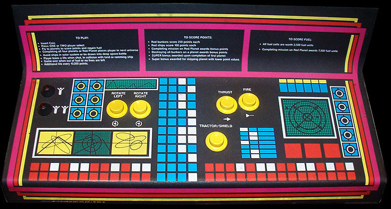 Footnote 1: Games.com - play Gravitar online I wish the keyboard controls on Games.com were set up in the same configuration as the real control panel They use the: Up, Left, Right, Z and Space keys. When I play Gravitar in Mame on my computer keyboard the keys I use are these (as they are in a similar position to the layout of the arcade control panel): S - rotate left, D - rotate right, K - Thrust, L - Fire, Space - Tractor/Shield ~ I have emailed the sugestion... so far no response. |