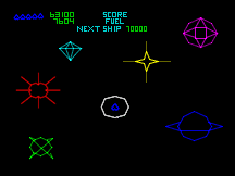 I am not including game play hints for Lunar Battle (I have not played it all the way through -- but you get the idea from the description of the differences above), but I thought people might enjoy seeing the differences between Gravitar and Lunar Battle -- planet icons and landscapes, bunkers, enemy ships, and fuel cells.